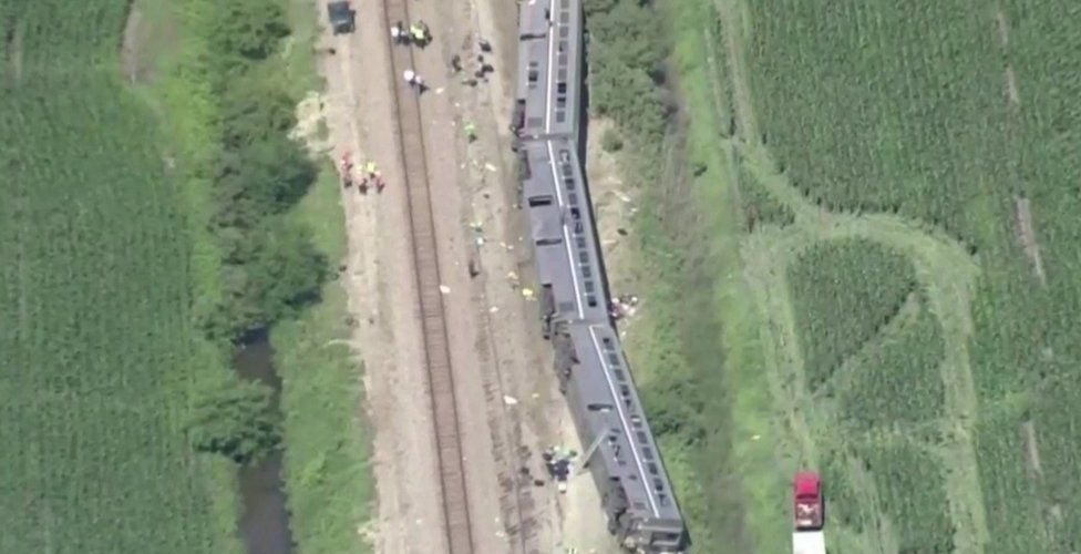 About 243 passengers were on board the Los Angeles-Chicago train when it came off the tracks at a rail crossing near the town of Mendon.