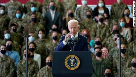 “I believe we’re at an inflection point in world history,” Biden told American troops. He cited a “moment where it falls to us to prove that democracies will not just endure, but they will excel, as we rise to seize the enormous opportunities of the new age.”