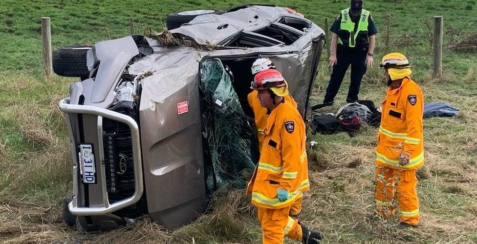 Tasmania Police said initial investigations suggested the second car had “collided with the rear of the police vehicle, while attempting to merge”. It caused the unmarked security vehicle to roll off the road.
