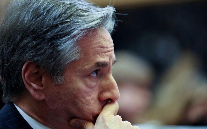 FILE PHOTO: U.S. Secretary of State Antony Blinken attends a European Union leaders summit amid Russia’s invasion of Ukraine, in Brussels, Belgium March 24, 2022. REUTERS/Evelyn Hockstein/File Photo