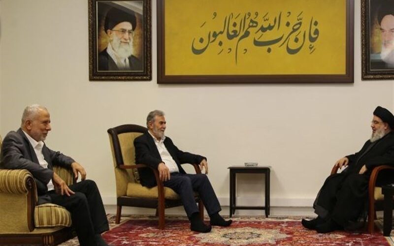 TEHRAN (Tasnim) – The secretary general of Lebanon’s Hezbollah resistance movement and the leader of the Palestinian Islamic Jihad resistance movement held talks on the developments in the two countries and issues related to the axis of resistance.