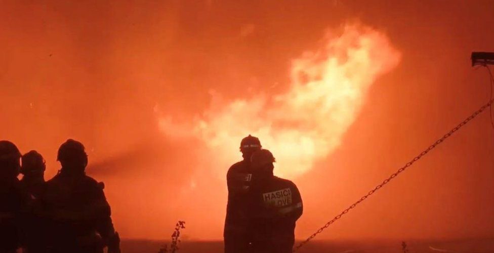 Hundreds of Czech firefighters were deployed as the fire destroyed areas of forest and homes in the village of Mezna. The fire was also threatening the nearby village of Hrensko, close to the German border, and dozens of people were forced to flee their homes.