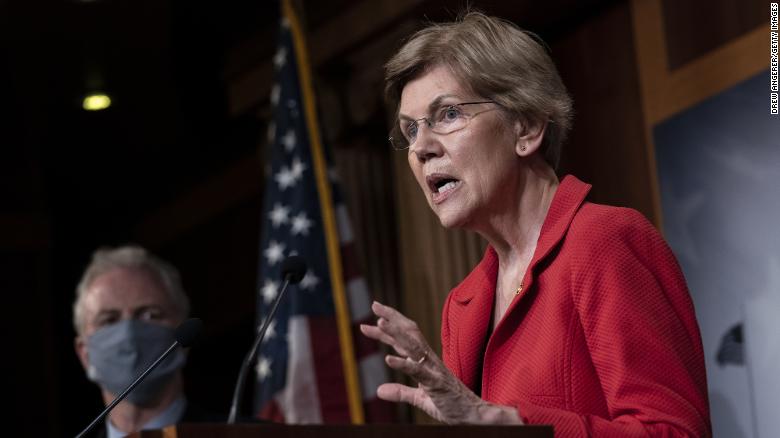 Sen. Elizabeth Warren (D-MA) speaks during a news conference concerning the extension of eviction protections in the coronavirus bill, at the US Capitol on July 22, 2020 in Washington, DC.
