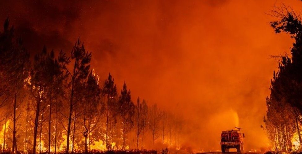 The huge wildfire in France’s Gironde region has been raging for two days near the commune of Landiras, about 30km (19 miles) south-east of Bordeaux.