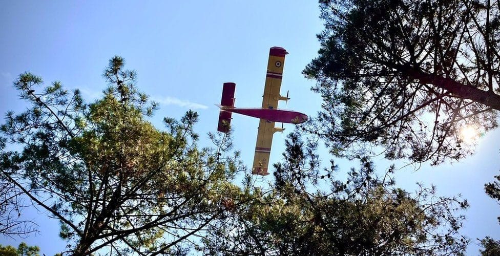 As we got closer to the shore, suddenly there was a roar above our heads. It was a Canadair aircraft – a “water bomber”.