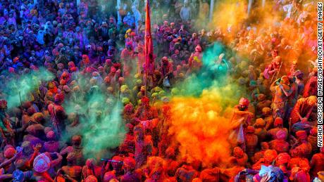 Today, street market vendors sell richly hued heaps of powder so that people can follow in the footsteps of Radha and Krishna.