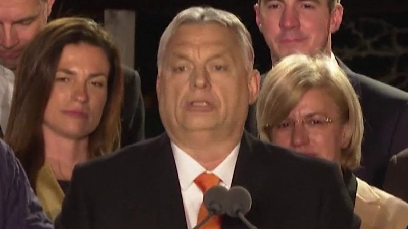 In his victory speech, Mr Orban criticised Brussels bureaucrats and Ukraine’s President Volodymyr Zelensky, calling them “opponents”.