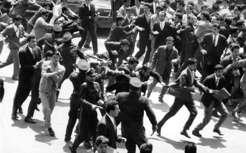 On June 5 and 6 of 1963, angry protesters were confronted by tanks and paratroopers in the Iranian cities of Qom, Tehran, Shiraz, Mashhad and Varamin in a crackdown in which about 15,000 people were killed.