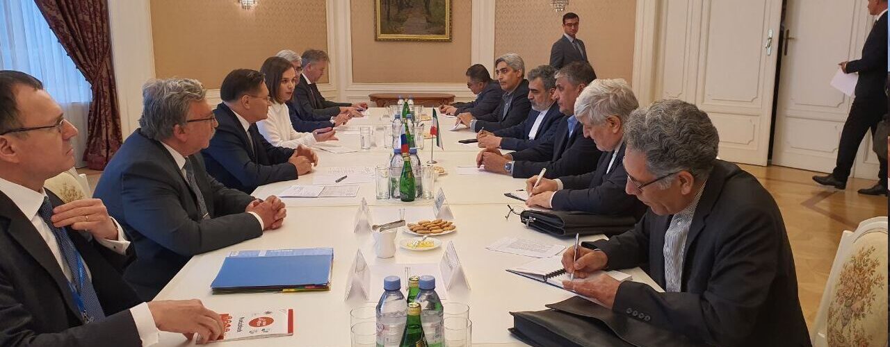 Tehran, IRNA – Head of the Atomic Energy Organization of Iran (AEOI) Mohammad Eslami, who is in Vienna to participate in the annual meeting of the General Conference of the International Atomic Energy Agency (IAEA), met Head of Rosatom Alexey Likhachev.