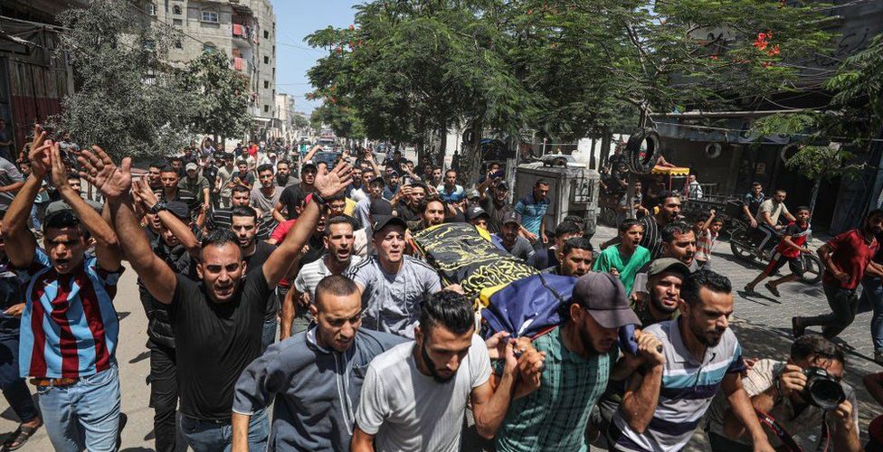 Large crowds gathered on Sunday for the funerals of those killed in strikes on Rafah, in the south of the territory, including senior PIJ commander Khaled Mansour – the second top militant to have died. Demonstrations in support of Gaza have also been held in the West Bank city of Nablus.