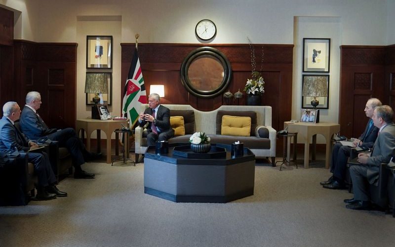 Jordan’s King Abdullah II meets with the Israeli Defence Minister Benny Gantz in Amman, Jordan March 29, 2022. Jordanian Royal Palace/Handout via Reuters
