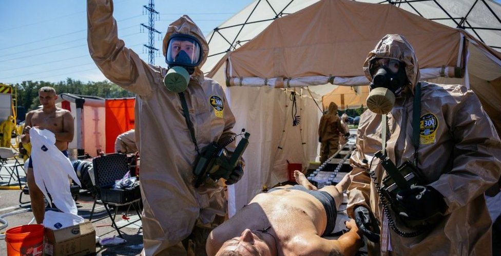 IMAGE SOURCE,GETTY IMAGESThey are watched by senior officials, who are keen to see how ready the region would be in the event of a worst-case scenario.