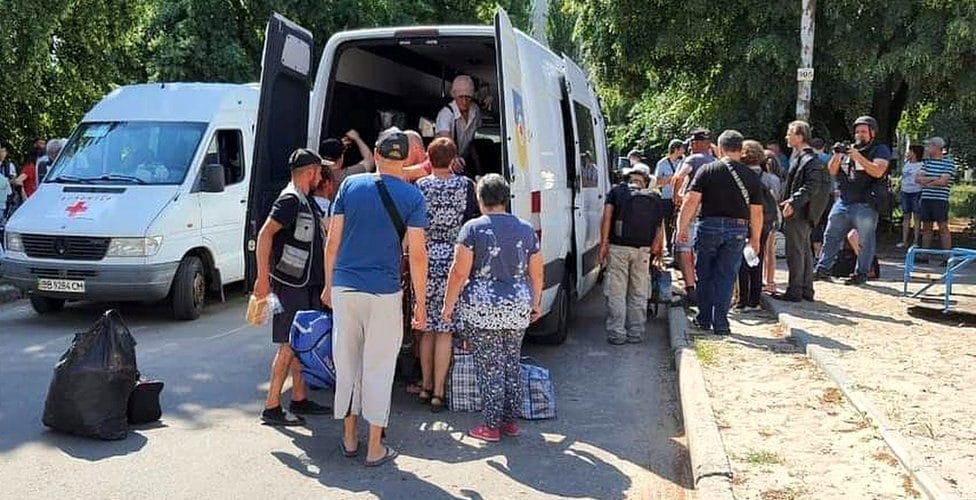 Civilians boarded minibuses on Wednesday morning as Russian forces advanced from the north and east.