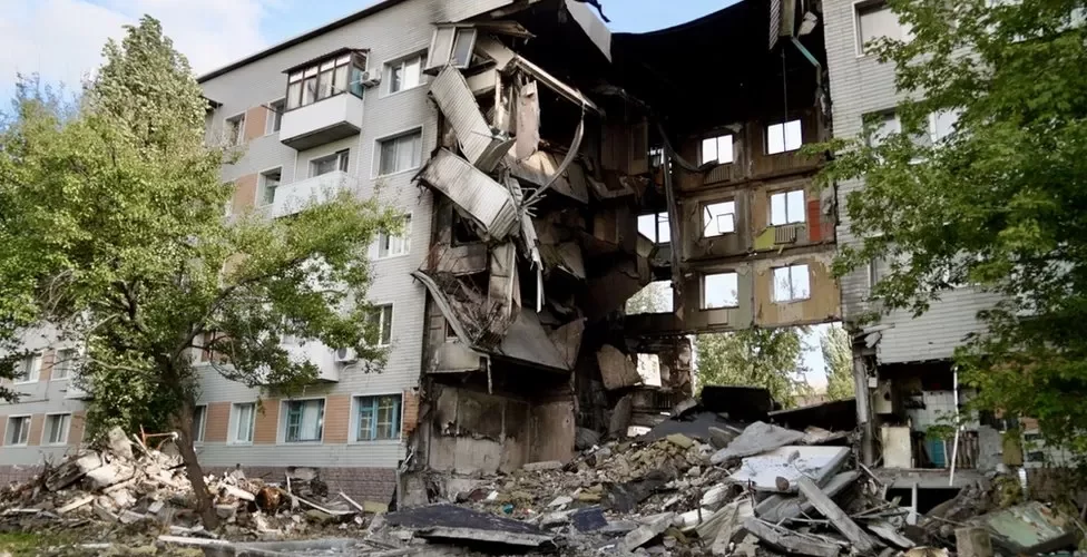 The brutality of war is staring her in the face. Her modest home is opposite from a blackened five-story apartment block ripped asunder by a Russian airstrike on 15 September. Five civilians were killed in the attack, according to the emergency services. As they searched in the rubble the next day one of their team was killed by shelling.