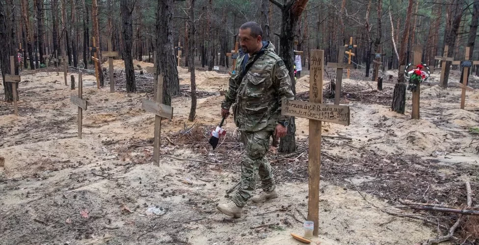 Ukraine says a mass burial site has been found outside Izyum, days after the town was re-taken from Russia.