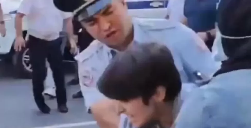 In one video, a man detained by officials headbutts a police officer, before being beaten by other personnel.