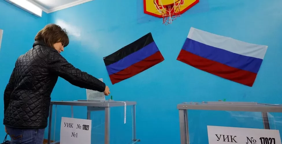 Four so-called referendums have ended in Russian-held regions of Ukraine – votes which Moscow may use as grounds to annex more territory.
