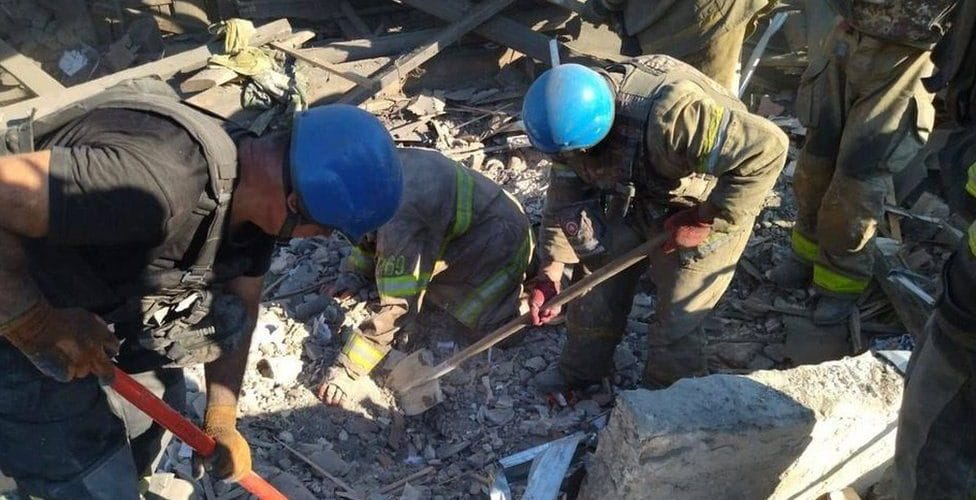 Rescuers found five bodies in the rubble of a house, while another person died in hospital, they add.