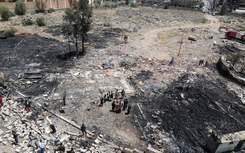 FILE PHOTO: People stand at the site of Saudi-led air strikes in Sanaa, Yemen March 26, 2022. REUTERS/Khaled Abdullah/File Photo