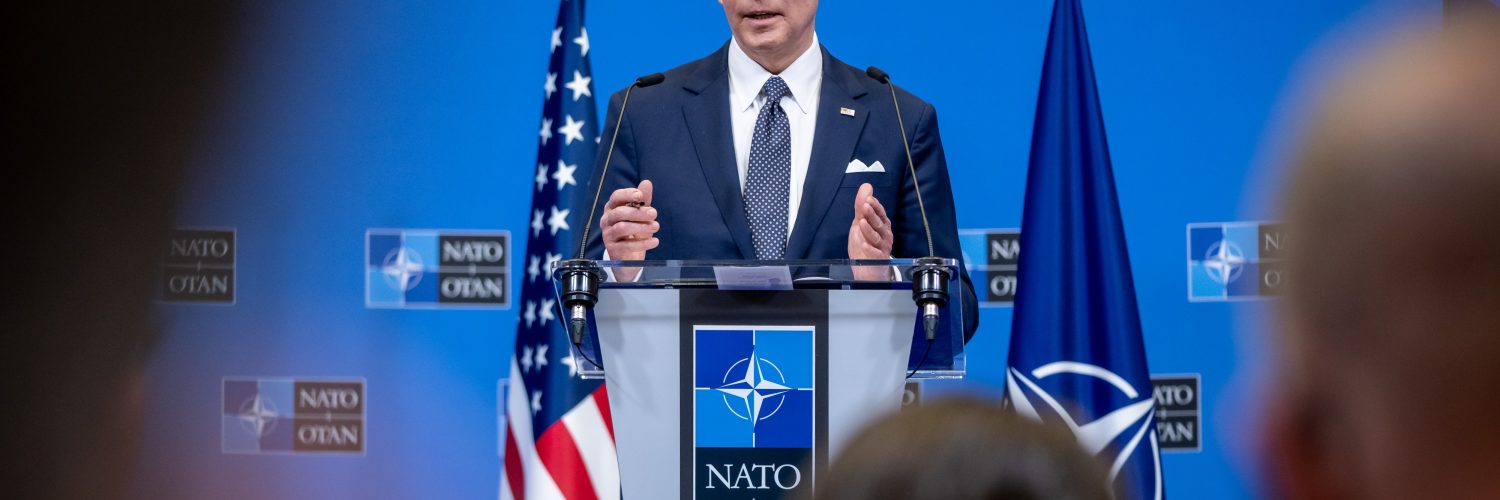 U.S. President Joe Biden attends a press conference after the special NATO summit at NATO headquarters in Brussels, Belgium, on March 24. (Michael Kappeler/picture alliance/Getty Images)