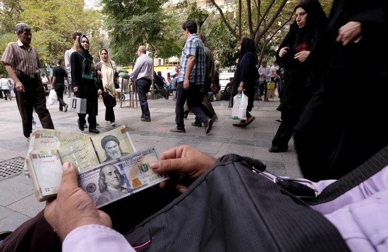 A money changer displays US and Iranian banknotes at the Grand Bazaar in central Tehran on October 7, 2015 [File: Raheb Homavandi/TIMA via Reuters]