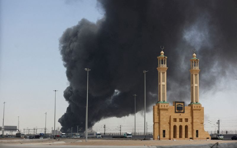FILE PHOTO: Smoke billows from a Saudi Aramco’s petroleum storage facility after an attack in Jeddah, Saudi Arabia March 26, 2022. REUTERS/Stringer/File Photo